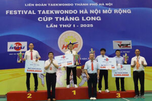 Sau 2 ngày thi đấu sôi nổi của hơn 1.000 vận động viên thuộc 49 đơn vị tại Trung tâm Văn hóa – Thông tin và Thể thao quận Bắc Từ Liêm, chiều 8/6, Festival Taekwondo Hà Nội mở rộng – Cúp Thăng Long lần thứ nhất năm 2025 đã khép lại.