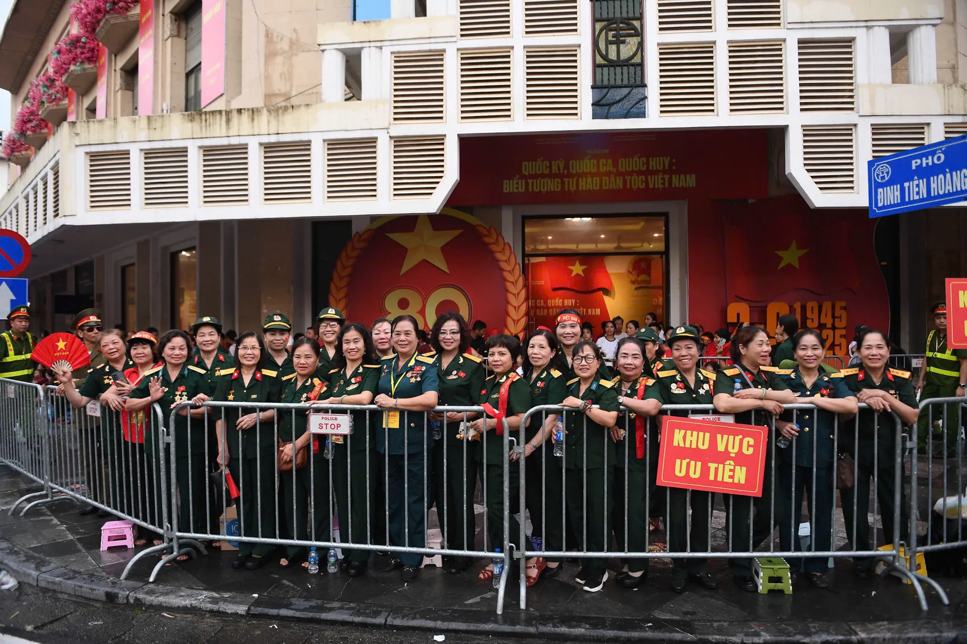 Các cựu chiến binh được bố trí những vị trí đẹp để xem diễu binh, diễu hành kỷ niệm 80 năm Cách mạng Tháng Tám thành công và Quốc khánh 2/9. Ảnh: Duy Khánh.