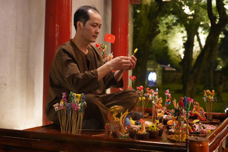 Không gian trải nghiệm được tổ chức vào buổi tối, khi Văn Miếu – Quốc Tử Giám trở về với vẻ tĩnh lặng, trang nghiêm vốn có. Dưới ánh sáng của hệ thống đèn lồng truyền thống, công chúng được dẫn dắt qua các không gian tiêu biểu của di tích như Khuê Văn Các, giếng Thiên Quang, khu vực Bái Đường… Tại đây, các hoạt động trình diễn nghề thủ công truyền thống như làm nón, đan cói, thêu, nặn tò he cùng những màn giao lưu nghệ thuật được sắp đặt hài hòa với cảnh quan kiến trúc và chiều sâu lịch sử, tạo nên một dòng chảy trải nghiệm liền mạch giữa vật thể và phi vật thể.