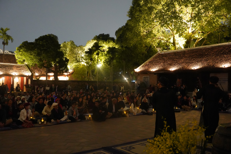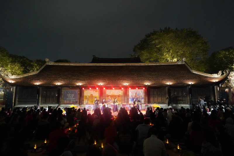 Trong xu hướng phát triển các sản phẩm văn hóa đêm gắn với di sản, tối 1/1/2026, tại Di tích Quốc gia đặc biệt Văn Miếu – Quốc Tử Giám, Trung tâm Hoạt động Văn hóa Khoa học Văn Miếu – Quốc Tử Giám đã giới thiệu chương trình trải nghiệm đêm mang tên “Âm sắc Việt”. Đây cũng là một trong những hoạt động được Văn Miếu – Quốc Tử Giám tổ chức đón chào năm mới 2026.