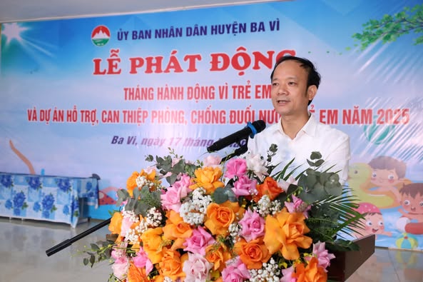 Phát biểu tại Lễ phát động, Phó Chủ tịch UBND huyện Ba Vì Nguyễn Đức Anh khẳng định: Dự án hỗ trợ, can thiệp phòng, chống đuối nước trẻ em năm 2025 là một hoạt động có ý nghĩa thiết thực, góp phần nâng cao nhận thức và trách nhiệm của toàn xã hội trong sự nghiệp bảo vệ, chăm sóc và giáo dục trẻ em. Trẻ em là chủ nhân tương lai của mỗi gia đình, là nguồn lực quý báu của đất nước. Vì vậy, trẻ em luôn cần được đặt ở vị trí trung tâm trong mọi chính sách và hành động của chúng ta. Mỗi em nhỏ đều có quyền được sống, học tập và phát triển trong một môi trường an toàn, lành mạnh và thân thiện; được bảo vệ khỏi mọi hình thức xâm hại và phân biệt đối xử. Lợi ích tốt nhất dành cho trẻ em phải luôn được ưu tiên hàng đầu. Đầu tư cho công tác bảo vệ trẻ em không chỉ là nghĩa vụ đạo đức mà còn là nền tảng quan trọng để xây dựng một xã hội an toàn, bền vững và phát triển con người toàn diện.