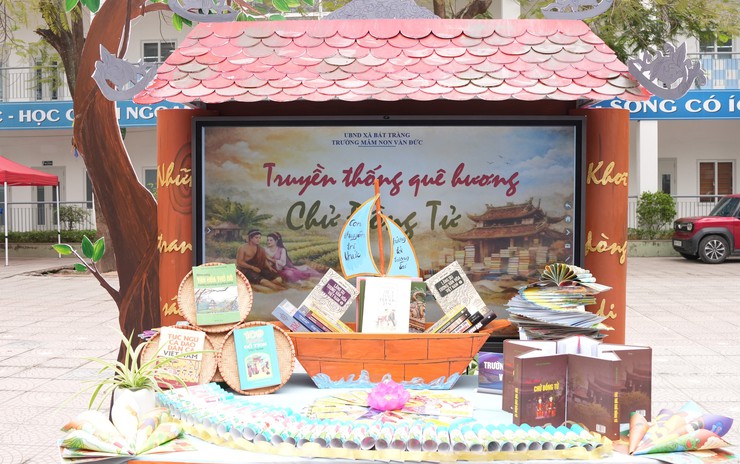 Ở phần thi trưng bày, xếp sách nghệ thuật, 6 trường mầm non trên địa bàn xã đã tái hiện các mô hình sáng tạo, giàu tính thẩm mỹ như bản đồ Việt Nam, hoa sen…, kết hợp hài hòa giữa sách và các vật liệu trang trí, tạo không gian đọc hấp dẫn, thân thiện với trẻ nhỏ.