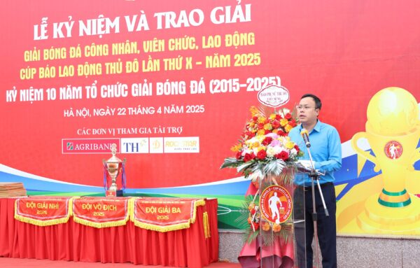 Phát biểu tại buổi Lễ, Chủ tịch Liên đoàn Lao động thành phố Hà Nội Phạm Quang Thanh nhấn mạnh, Giải bóng đá CNVCLĐ Cúp Báo Lao động Thủ đô không chỉ là sân chơi thể thao sôi nổi, hấp dẫn mà còn là nơi gặp gỡ, giao lưu, tăng cường tinh thần đoàn kết giữa các cơ quan, đơn vị, doanh nghiệp. Đó là những thành quả rất đáng tự hào. Thay mặt Ban Thường vụ Liên đoàn Lao động Thành phố, Chủ tịch Liên đoàn Lao động thành phố Hà Nội ghi nhận, biểu dương sự cố gắng, nỗ lực của Ban Tổ chức, cụ thể là Báo Lao động Thủ đô, Ban Tuyên giáo Liên đoàn Lao động Thành phố; biểu dương sự vào cuộc tích cực của các cấp Công đoàn Thủ đô trong việc triển khai, duy trì, phát triển một sân chơi bổ ích, lý thú của CNVCLĐ Thủ đô suốt 10 năm qua.