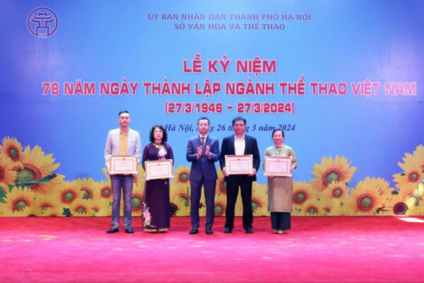 Phó Giám đốc Sở Văn hóa và Thể thao Phạm Xuân Tài trao bằng khen của Chủ tịch UBND thành phố cho các đơn vị có thành tích xuất sắc nhân kỷ niệm 78 năm Ngày thành lập ngành Thể thao Việt Nam. Ảnh minh họa