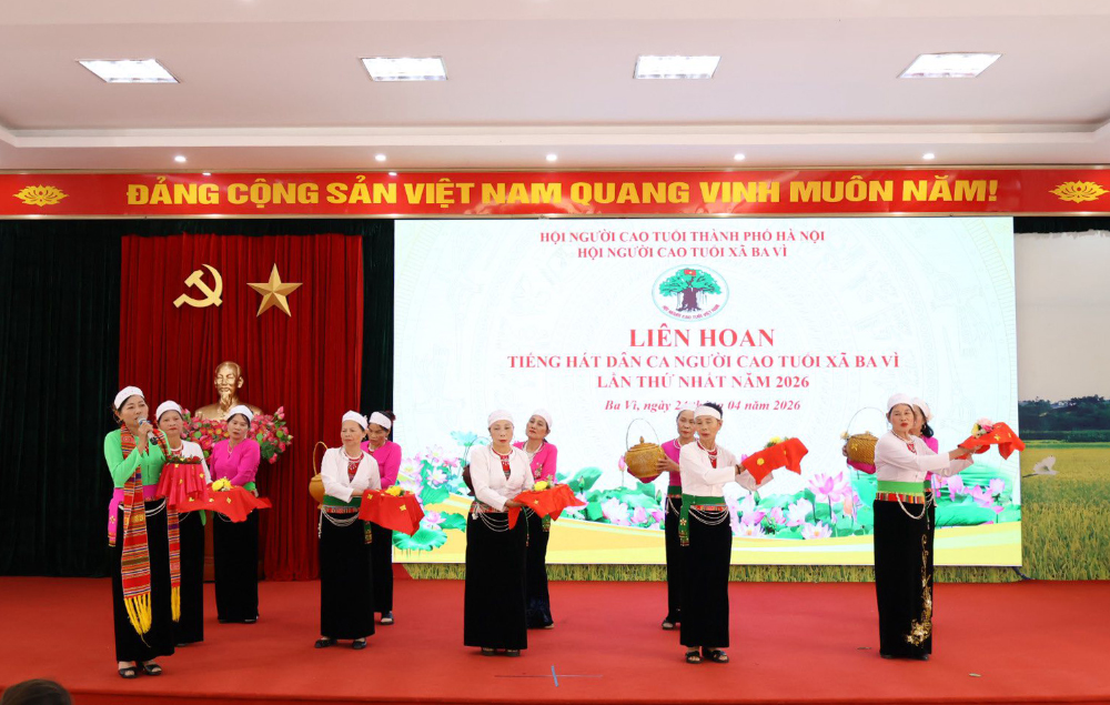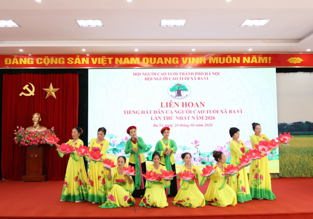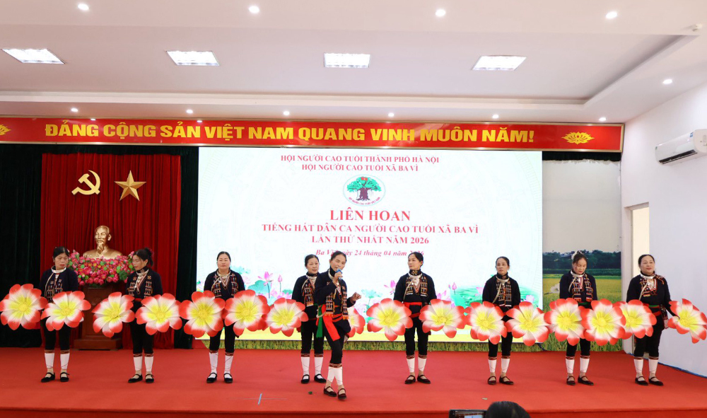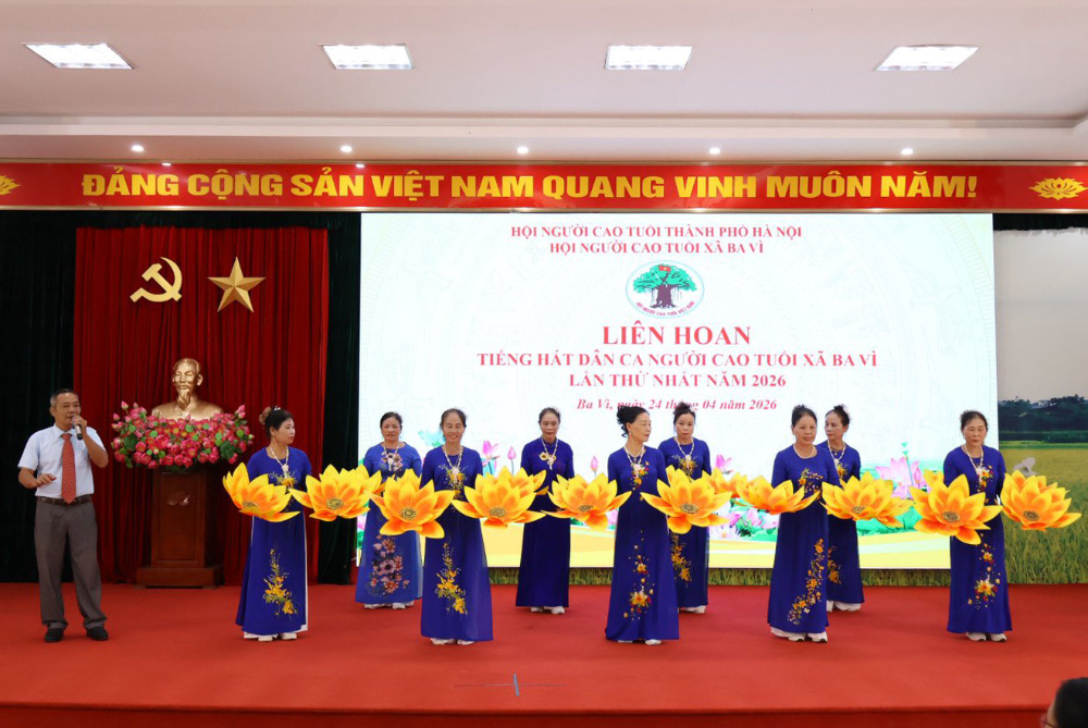 Sáng 24/4/2026, Liên hoan Tiếng hát Dân ca Người cao tuổi xã Ba Vì lần thứ nhất năm 2026 đã được tổ chức trang trọng với nhiều tiết mục đặc sắc. Chương trình do Hội Người cao tuổi xã thực hiện, nhằm tạo sân chơi lành mạnh, ý nghĩa cho người cao tuổi, đồng thời góp phần bảo tồn và phát huy các giá trị dân ca truyền thống.