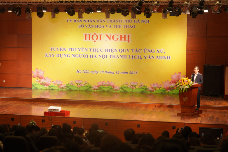 Chiều 30/12, tại Bảo tàng Hà Nội, Sở Văn hóa và Thể thao Hà Nội tổ chức Hội nghị tuyên truyền thực hiện Quy tắc ứng xử, xây dựng người Hà Nội thanh lịch, văn minh năm 2025. Đây là hoạt động có ý nghĩa quan trọng trong việc tiếp tục lan tỏa sâu rộng các giá trị văn hóa ứng xử, góp phần xây dựng môi trường công sở kỷ cương, không gian công cộng văn minh và hình ảnh người Hà Nội thanh lịch, trách nhiệm, thân thiện trong giai đoạn phát triển mới của Thủ đô.