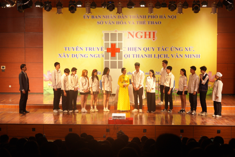 Bên cạnh hoạt động tuyên truyền trực quan, Hội nghị cũng được nghe Tiến sĩ Lê Thị Thu Hương – Viện trưởng Viện Hà Nội học và Đào tạo quốc tế, Trường Đại học Thủ đô Hà Nội phổ biến nhiệm vụ xây dựng người Hà Nội thanh lịch, văn minh. Đồng thời, Hội nghị cũng là diễn đàn để các cơ quan, đơn vị, địa phương trao đổi kinh nghiệm trong công tác quản lý văn hóa, xây dựng đời sống văn hóa cơ sở; đồng thời nhấn mạnh tầm quan trọng của việc thực hiện 02 Quy tắc ứng xử.