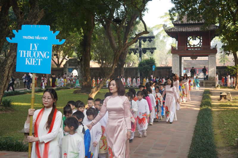Chia sẻ cảm xúc khi tham gia sự kiện, cô giáo Trương Minh Phương – giáo viên chủ nhiệm lớp 2A5, Trường Tiểu học Văn Chương cho biết, hoạt động diễu hành mang ý nghĩa giáo dục sâu sắc. “Trong bối cảnh hội nhập và phát triển mạnh mẽ của công nghệ, việc giúp học sinh tiếp cận và thấm nhuần các giá trị văn hóa truyền thống là vô cùng cần thiết. Đây là niềm vinh dự lớn đối với cả cô và trò khi được góp mặt trong sự kiện ý nghĩa này”, cô nói.