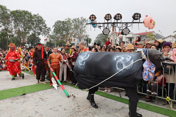 Cùng với đó, các tích trò cày bừa, cấy lúa, đối đáp giao duyên giữa thợ cày – thợ cấy được tái hiện sinh động, biến lao động vất vả thành ngày hội của tiếng cười và niềm tin. Đặc biệt, tại Lễ hội Canh nông Xuân Bính Ngọ 2026, hình ảnh lãnh đạo địa phương trực tiếp xuống đồng cày ruộng cùng bà con càng làm nổi bật tinh thần đoàn kết, đồng lòng giữa chính quyền và Nhân dân, tiếp nối truyền thống trọng nông của cha ông.