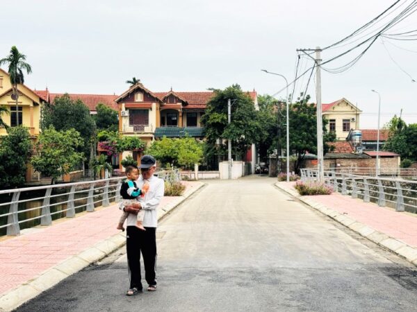 Residents of Vong Xuyen Commune, Phuc Tho District, on a clean and well-maintained road