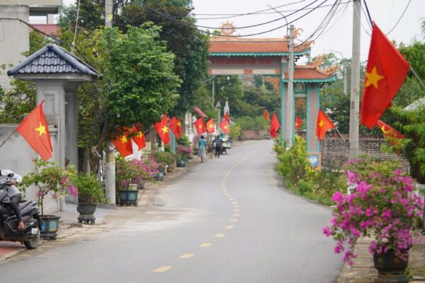 In Vong Xuyen Commune, Phuc Tho District, Deputy Chairman of the People’s Committee, Mr. Le Nam Hung, reported that upon receiving the district’s contest plan, the commune took proactive measures to build a Bright, Green, Clean, Beautiful, and Safe Vong Xuyen. All cultural houses are regularly cleaned by their management teams, with beautiful flower gardens in their premises, outdoor sports equipment installed, and information boards prominently displayed. The commune has developed flower-lined main roads, and women’s associations manage additional flower-lined sections in each village. The People’s Committee has also installed a new system of flag holders and pink-flag poles from Route 418 to the People’s Committee office at Vong Ngoai Hamlet, with a total investment of VND 40 million. Notably, in 2024, the commune mobilized funds to repair and build several new welcome gates, with a total socialized funding of VND 1,176.7 million.