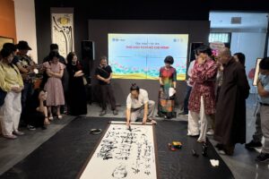 Delegates cutting the ribbon at the exhibition opening. The exhibited artworks are the creative achievements of artists from the “Colorful Natural Life School” Calligraphy Club, with the collaboration of the.. Xem thêm