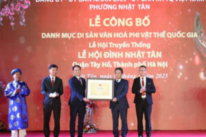Deputy Minister of Culture, Sports and Tourism Hoang Dao Cuong presented the Decision recognizing the Nhat Tan Communal House Festival as a national intangible cultural heritage to the leaders and.. Xem thêm