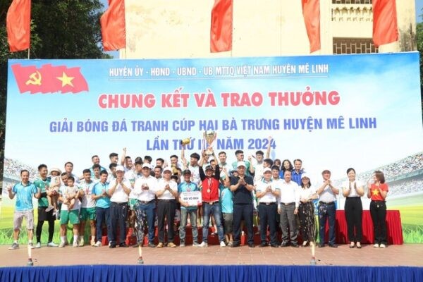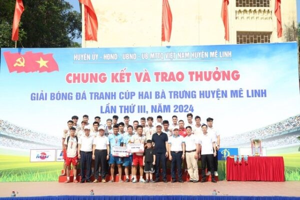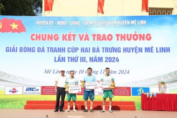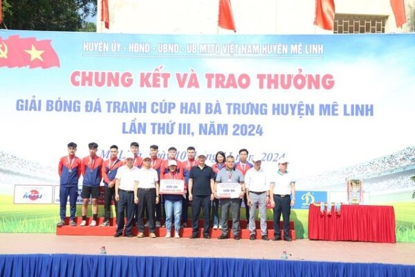 Immediately after the final, the organizing committee awarded prizes to teams and individuals. Specifically, the first prize, valued at VND 20 million, along with the championship trophy and gold medals, was awarded to the Chi Dong Town football team; the second prize, worth VND 15 million, along with the silver medals and flag, was given to the Me Linh Commune team; and two third prizes, each worth VND 10 million, along with the bronze medals and flags, were awarded to the Tu Lap Commune and Quang Minh Town teams.