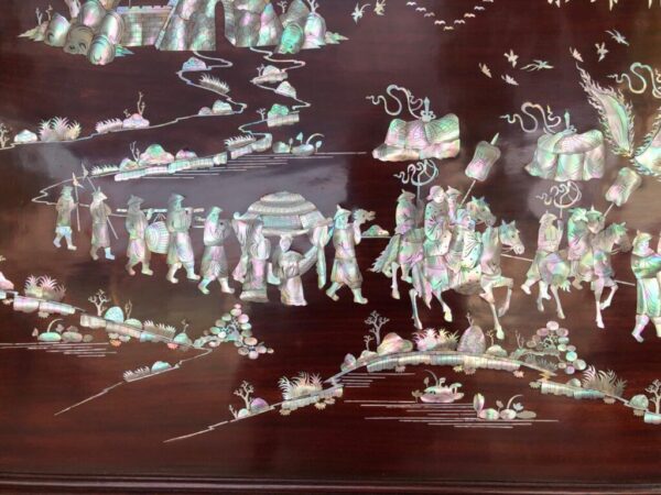 The craft of mother-of-pearl inlay in Chuyen My commune, Phu Xuyen district dates back to the Ly Dynasty. Over the course of a thousand years, products made from shells and mother-of-pearl inlaid into wooden furniture such as cabinets, tables, or decorative panels – once reserved only for royal families and the wealthy – have now become popular household items throughout Vietnam and are exported to many countries around the world.