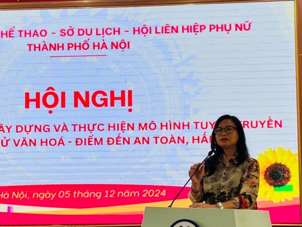 Attending the conference were distinguished delegates: Vi Thanh Hoai, Deputy Director of the Basic Culture Department (Ministry of Culture, Sports and Tourism); Hoang Thu Hong, Head of the Propaganda Department of the City Women’s Union; Tran Thi Van Anh, Deputy Director of the Hanoi Department of Culture and Sports; Tran Trung Hieu, Deputy Director of Hanoi Tourism Department; representatives from the Heritage Management Office, Cultural and Family Lifestyle Development Office, Hoa Lo Prison Management Board, Van Mieu – Quoc Tu Giam Cultural and Scientific Activities Center, Scenic Sites Management Board; heads of Culture and Information offices; Presidents of Women’s Unions; Deputy Chairpersons of commune-level People’s Committees where recognized sites are located; and representatives from recognized sites and destinations.