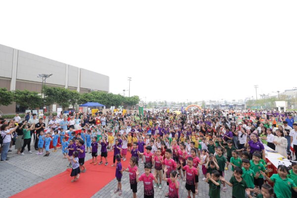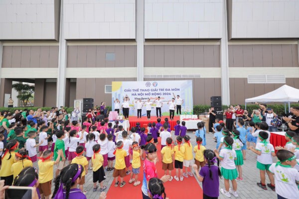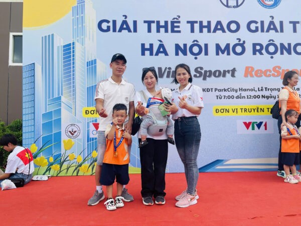 This year’s tournament saw over 1,000 young athletes and families from five provinces and cities participating, with the furthest participants being athletes from Tuyen Quang Kindergarten. They competed in two main events: RecSports and GymKid, including Kick Dart (Sticky Ball Throw), Disc Golf (Frisbee), Family Kick Dart, and a team relay obstacle course for children.