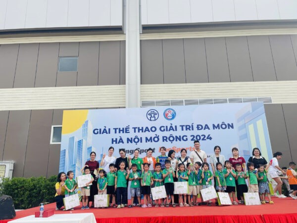 This year’s tournament saw over 1,000 young athletes and families from five provinces and cities participating, with the furthest participants being athletes from Tuyen Quang Kindergarten. They competed in two main events: RecSports and GymKid, including Kick Dart (Sticky Ball Throw), Disc Golf (Frisbee), Family Kick Dart, and a team relay obstacle course for children.