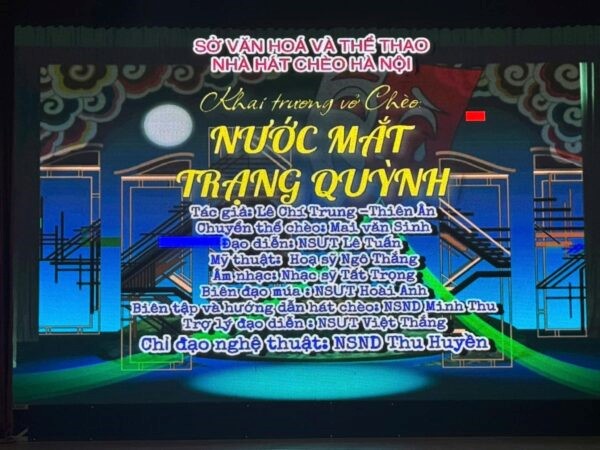 Tears of Trang Quynh was written by Le Chi Trung and Thien An, adapted into Cheo by Mai Van Sinh, directed by Meritorious Artist Le Tuan, with choreography by Meritorious Artist Hoai Anh, artic design by artist Ngo Thang, music by musician Tat Trong, and Cheo singing instruction and editing by People’s Artist Minh Thu. The artistic direction is led by People’s Artist Thu Huyen.