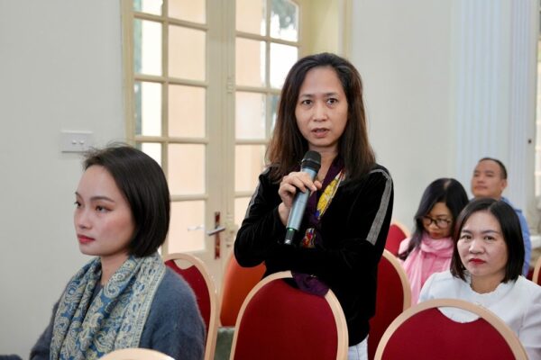 Ms. Le Thi Anh Mai, Deputy Director of the Hanoi Department of Culture and Sports, speaks at the press conference.