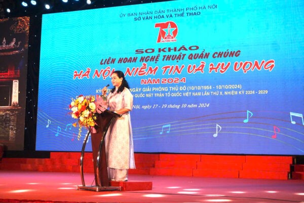 On the evening of October 17, at the outdoor stage of the City Cultural Center, the Hanoi Department of Culture and Sports organized the preliminary round of the Mass Art Festival “Hanoi – Faith and Hope” in 2024, practically celebrating the 70th anniversary of the Liberation of the Capital (October 10, 1954 – October 10, 2024), welcoming the 10th National Congress of the Vietnam Fatherland Front, term 2024 – 2029.