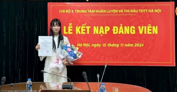 Athlete Duong Thuy Vi at the Party Membership Admission Ceremony on November 15, 2024 – Photo: Minh Minh
