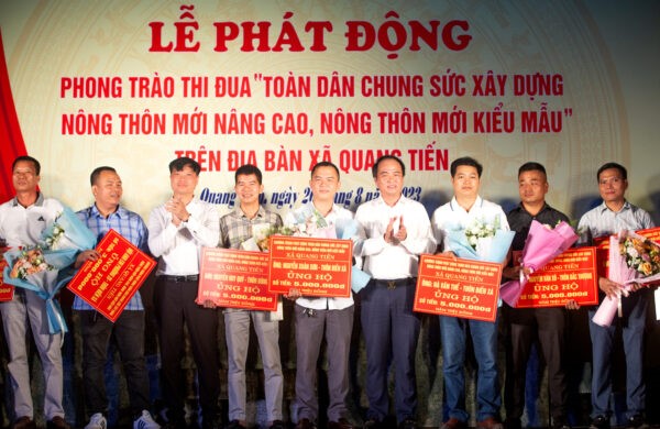 Groups and individuals supporting the development of advanced and model new rural areas in Quang Tien.