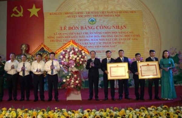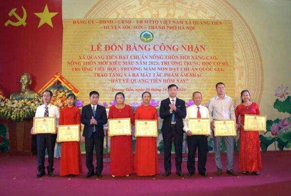 On this occasion, local preschools, primary schools, and secondary schools in Quang Tien Commune were recognized as meeting national standards. One group and three individuals received certificates of merit from the Hanoi City People’s Committee Chairman; 31 groups and 66 individuals were awarded by the Commune People’s Committee for their achievements in developing advanced and model new rural areas.