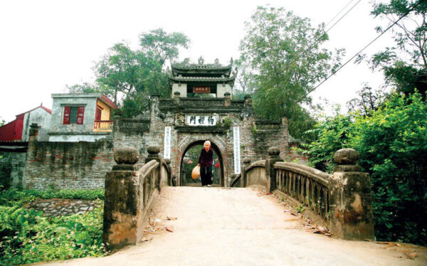 Through the village gate, visitors seem to step into a serene, moss-covered space, full of the traditional Northern Vietnamese atmosphere. Narrow alleys paved with slanted bricks, faded bee-hive stone walls, and roofs tinted by time paint a picture of a quiet countryside. On both sides of the streets stand over 100-year-old houses, featuring traditional architecture.