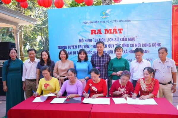 During the program, the District Women’s Union also launched a core group of 10 members to promote the Code of Conduct at places of worship. The group’s responsibilities include encouraging locals, buddhists, and visitors to follow Hanoi People’s Committee’s conduct guidelines, such as wearing appropriate attire, avoiding profanity, not bringing votive paper into temples, and maintaining cleanliness. Twenty families signed commitments to promote and practice public conduct rules, helping build civilized behavior at historical sites and expand the “Model Historical Sites” initiative to other locations in the commune.
