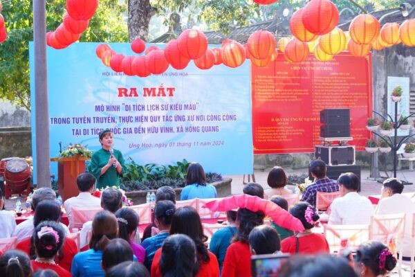 Huu Vinh Temple is the first historical site in Ung Hoa district to implement the model cultural site initiative, serving as a destination for officials, union members, women, and the public to visit and promote good public conduct among family, friends, and relatives, building a successful “Model Historical Site” in the commune and district. The model has practical significance, contributing to civilized behavior among site managers, locals, and visitors while showing respect for historical sites and enhancing their authentic values within the community.