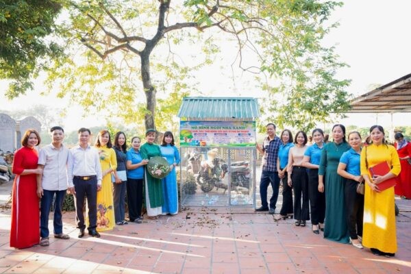 To develop and implement the “Model Historical Sites in Implementing Public Code of Conduct” initiative, the Ung Hoa Women’s Union collaborated with the Party Committee, People’s Committee of Hong Quang commune, Communal Site Management Board, and Huu Vinh Temple Management Sub-committee to review and enhance criteria according to Hanoi Women’s Union Standing Committee’s guidelines. The Commune Women’s Union installed informative boards about public conduct rules, illustrated with easy-to-understand visuals. They also built and installed a “green house” within the temple grounds for waste collection and sorting, protecting the landscape while raising funds for disadvantaged members and children.