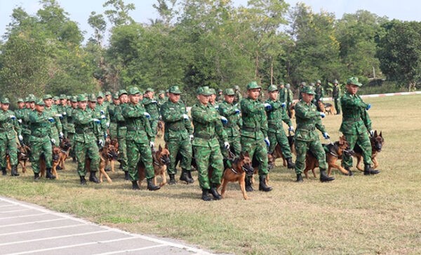The lineup of trainers and service dogs practicing for the opening ceremony performance – Photo: People’s Army