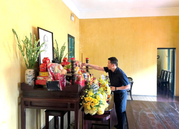 Đồng chí Phạm Tuấn Long – Giám đốc Sở Văn hóa và Thể thao Hà Nội dâng hương tại bàn thờ Chủ tịch Hồ Chí Minh trong khu di tích – Ảnh: BQLDTDT