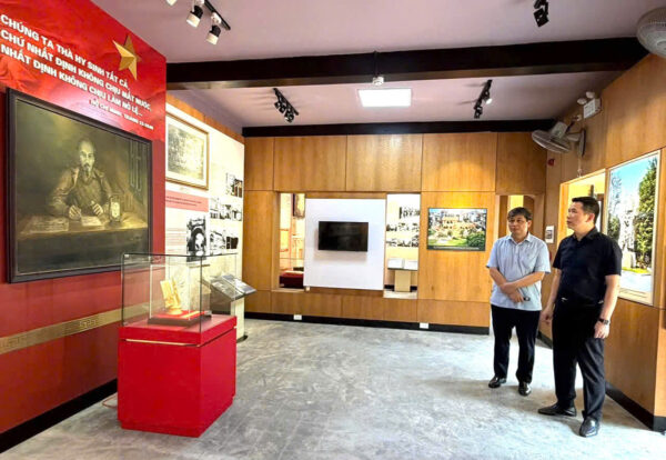 Đồng chí Phạm Tuấn Long – Giám đốc Sở Văn hóa và Thể thao Hà Nội thăm không gian trưng bày tại di tích – Ảnh: BQLDTDT