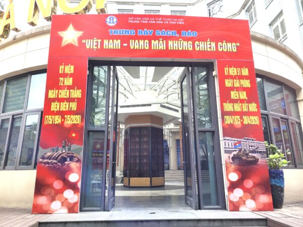 Thiết thực kỷ niệm 51 năm Ngày Giải phóng miền Nam, thống nhất đất nước (30/4/1975 – 30/4/2026) và 72 năm Ngày Chiến thắng Điện Biên Phủ (7/5/1954 – 7/5/2026), sáng 28/4, Trung tâm Văn hóa và Thư viện Hà Nội tổ chức trưng bày sách, báo “Việt Nam – Vang mãi những chiến công”.