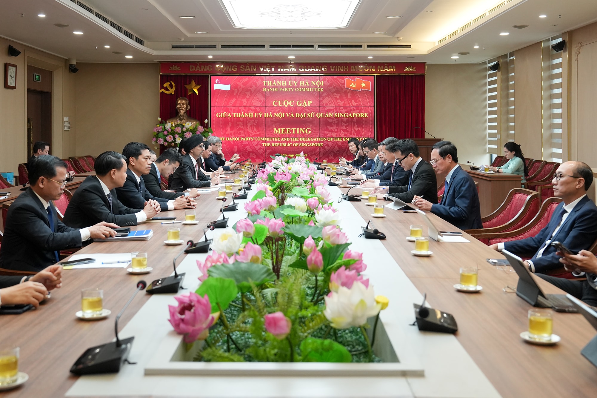 Tại buổi làm việc, các cán bộ của Thành ủy Hà Nội chuẩn bị tham gia bồi dưỡng tại Singapore đã trao đổi nhiều ý kiến với Đại sứ Singapore. Đại diện lớp học, Giám đốc Sở Văn hóa và Thể thao thành phố Phạm Tuấn Long bày tỏ mong muốn thông qua chương trình học sẽ được tiếp cận và trao đổi trực tiếp với các chuyên gia Singapore về những vấn đề quan tâm, đặc biệt là kinh nghiệm về phát triển đô thị thông minh, phát triển kinh tế trong đô thị…