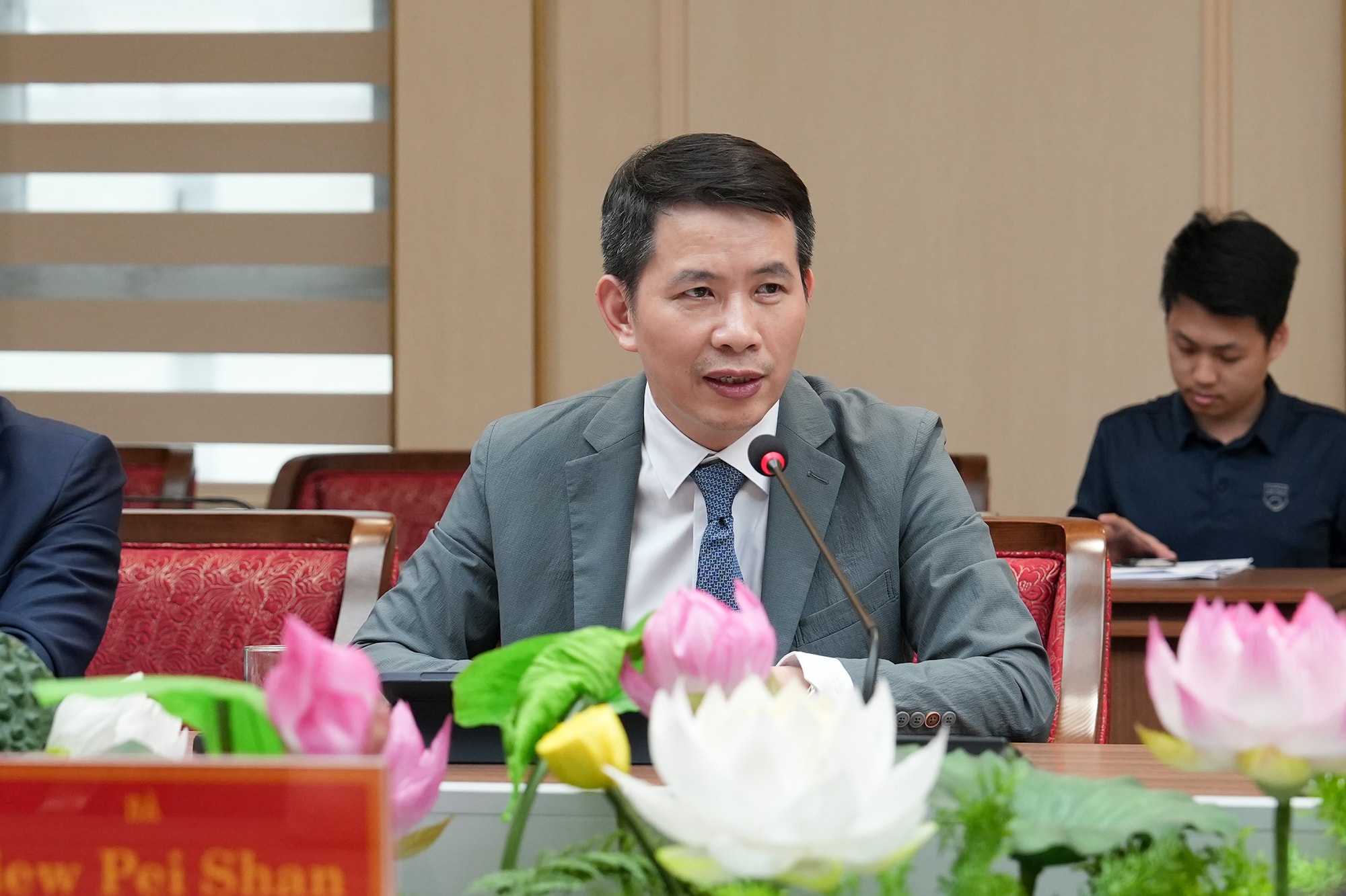 Giám đốc Sở Văn hóa và Thể thao thành phố Hà Nội Phạm Tuấn Long nêu câu hỏi tới Đại sứ Singapore. Ảnh: Hoàng Linh