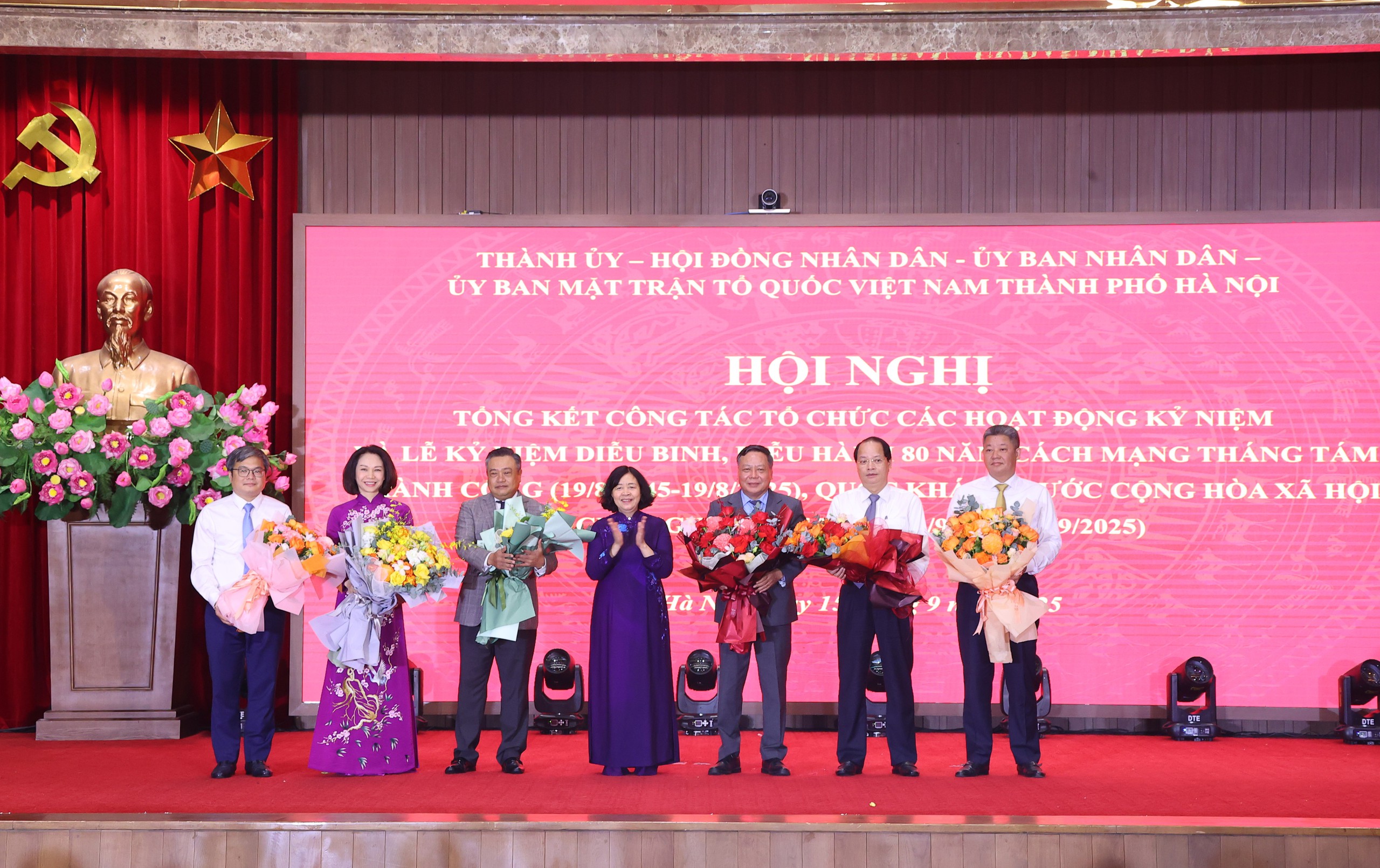Tại Hội nghị, đồng chí Bùi Thị Minh Hoài, Ủy viên Bộ Chính trị, Bí thư Thành ủy Hà Nội tặng hoa, chúc mừng các đồng chí trong Ban Tổ chức và các Trưởng Tiểu ban đã lãnh đạo, chỉ đạo hoàn thành tốt nhiệm vụ, góp phần vào sự thành công của Lễ kỷ niệm A80.