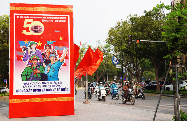 Chào mừng Kỷ niệm 50 năm Ngày giải phóng miền Nam, thống nhất đất nước, những ngày cuối tháng 4, khắp phố phường Hà Nội được trang trí rực rỡ cờ hoa, pano, khẩu hiệu tuyên truyền, tạo nên bầu không khí đầy tự hào, phấn khởi.