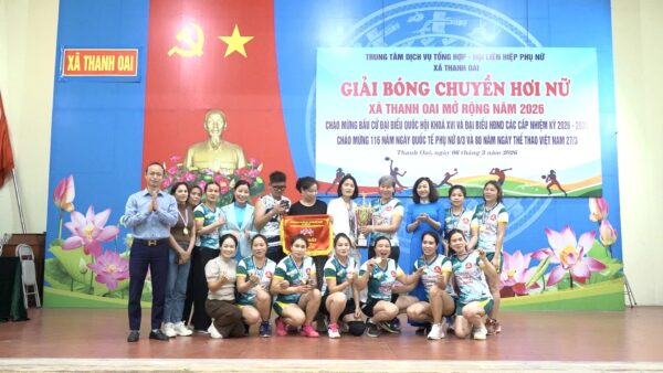 Chiều 5/3, Trung tâm Dịch vụ tổng hợp xã Thanh Oai phối hợp với Hội Liên hiệp Phụ nữ xã tổ chức Giải Bóng chuyền hơi nữ mở rộng năm 2026. Đây là hoạt động thiết thực chào mừng cuộc bầu cử đại biểu Quốc hội khóa XVI và đại biểu HĐND các cấp nhiệm kỳ 2026 – 2031; kỷ niệm 116 năm Ngày Quốc tế Phụ nữ 8/3 (8/3/1910 – 8/3/2026), 1986 năm Cuộc khởi nghĩa Hai Bà Trưng và 80 năm Ngày Thể thao Việt Nam (27/3/1946 – 27/3/2026).