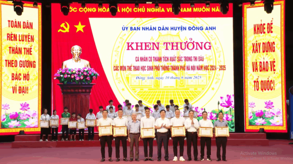 Nhằm  động viên các VĐV đã đạt thành tích trong các môn thi đấu tại Giải thể thao học sinh phổ thông thành phố Hà Nội năm học 2024-2025, huyện Đông Anh đã khen thưởng cho 31 cá nhân, gồm 24 VĐV tham gia thi đấu và 7 Huấn luyện viên tham dự Giải.