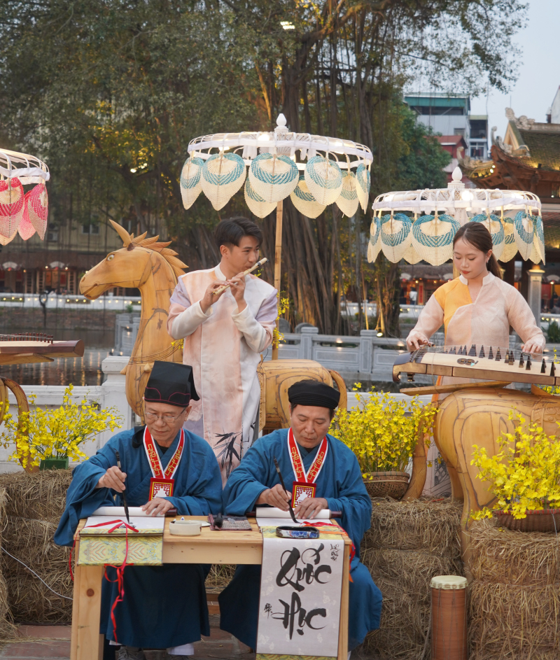 Điểm nhấn xuyên suốt của sự kiện là 35 gian lều thư pháp, quy tụ các nhà hoạt động thư pháp được tuyển chọn kỹ lưỡng thông qua quy trình khảo tuyển khách quan, minh bạch. Không gian xin chữ đầu năm được tổ chức nền nếp, trang trọng, tạo điều kiện để công chúng tiếp cận và cảm nhận sâu sắc hơn giá trị của nghệ thuật thư pháp truyền thống.