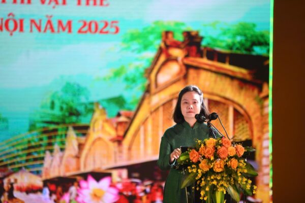 Bà Lê Thị Ánh Mai, Phó Giám đốc Sở Văn hóa và Thể thao thành phố Hà Nội phát biểu tại buổi lễ