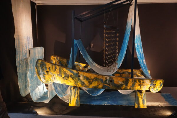 Trên chất liệu lụa hiện đại, các nữ họa sĩ Thu Trần, Phan Minh Bạch – Hà Phạm sử dụng bút pháp trừu tượng với những vệt tung tẩy, loang chảy mạnh mẽ – nơi sự mềm mại song hành cùng nội lực, tạo nên thế giới thị giác vừa tinh tế vừa mãnh liệt.