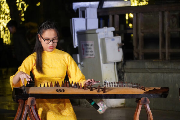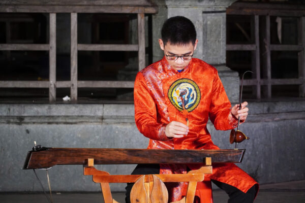 Bên cạnh những màn trình diễn kỹ thuật cao, khán giả được lắng lại trong khoảnh khắc đầy chất thơ với tiếng đàn bầu trong tác phẩm “Buổi sáng trên sông Hương” do em Nam Thắng thể hiện. Âm thanh sâu lắng của nhạc cụ dân tộc vang lên giữa sân khấu mở, tạo nên khoảng lặng nhẹ nhàng, đưa người nghe trở về với những xúc cảm thuần khiết.