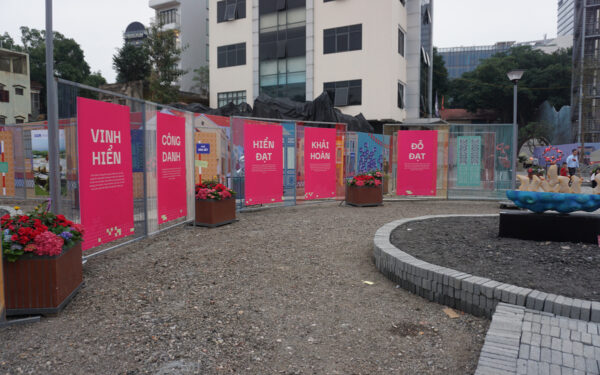 Nhằm tạo điểm nhấn không gian văn hóa – cảnh quan, góp phần chỉnh trang đô thị khu vực trung tâm hồ Hoàn Kiếm, UBND phường Hoàn Kiếm đã phối hợp với Khoa Thiết kế Mỹ thuật, Trường Đại học Kiến trúc Hà Nội tổ chức trưng bày các tác phẩm điêu khắc nghệ thuật tại khu vực hoàn trả tạm sau khi phá dỡ.