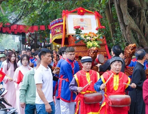 Sau nghi thức trao bằng xếp hạng, lãnh đạo địa phương cùng các cụ cao niên hai giới và đông đảo Nhân dân thôn Sài Khê đã tổ chức rước Bằng xếp hạng di tích từ quán Tam Xã về yên vị tại đình làng Sài Khê.