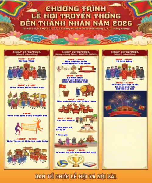 Lễ hội đền Thanh Nhàn năm Bính Ngọ 2026 sẽ diễn ra trong 03 ngày từ 21 – 23/02/2026 (tức mùng 5, mùng 6, mùng 7 tháng Giêng năm Bính Ngọ).