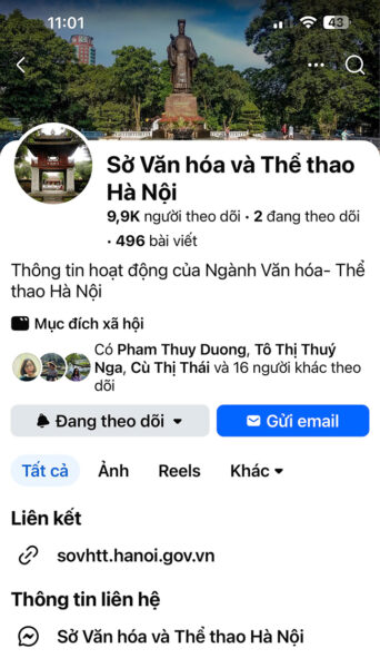 Trang facebook Sở Văn hóa và Thể thao Hà Nội
